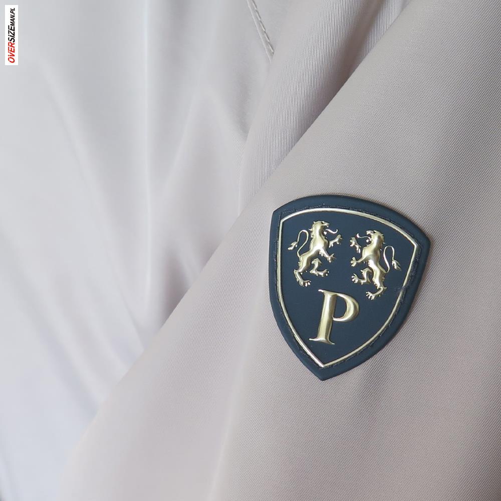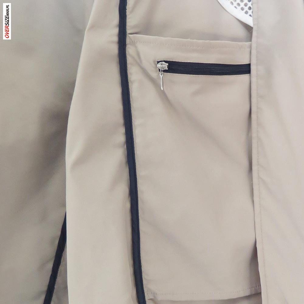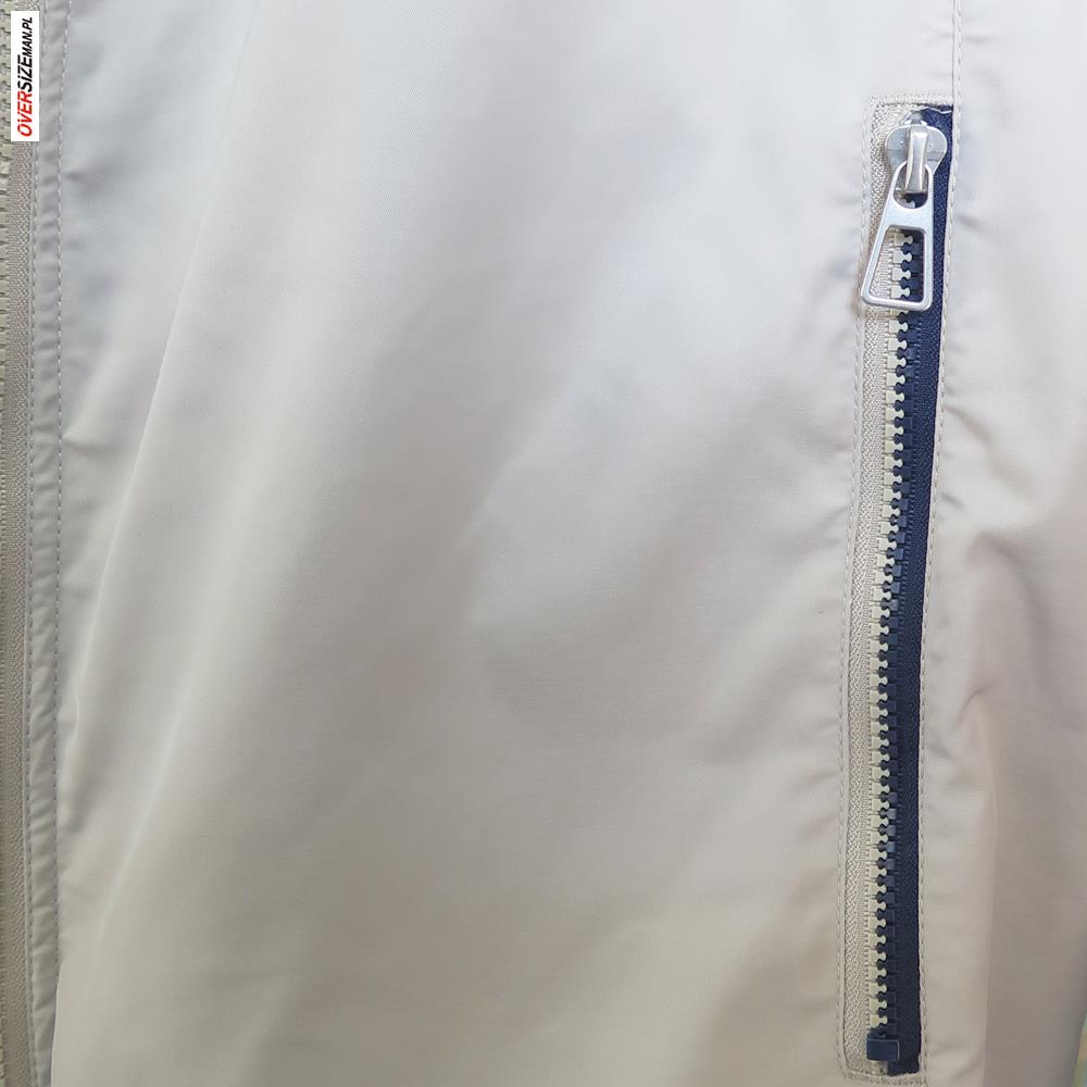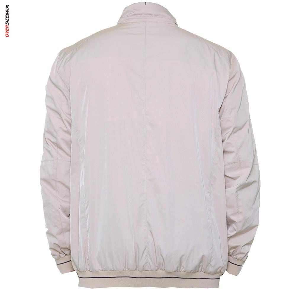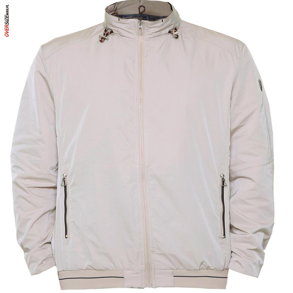 Beżowa kurtka męska typu bomber włoskiej marki Maxfort to stylowa propozycja dla mężczyzn szukających odzieży męskiej w dużych rozmiarach. Model wyróżnia się regulowaną stójką ze sznurkiem, klasycznym krojem i subtelnymi granatowymi detalami na ściągaczach, które podkreślają nowoczesny charakter kurtki. Logo kolekcji Maxfort – Prestige na prawym ramieniu dodaje ekskluzywnego akcentu.
