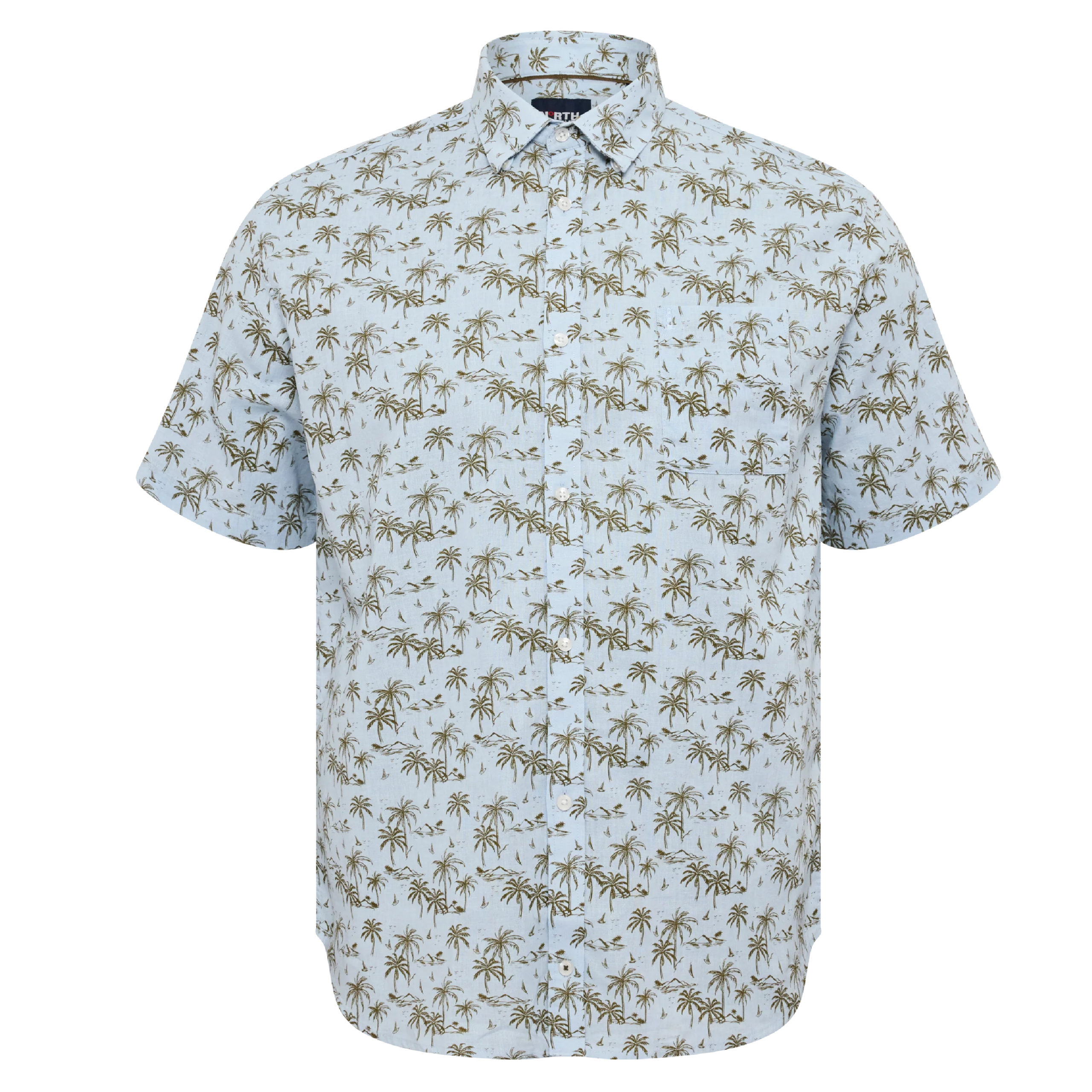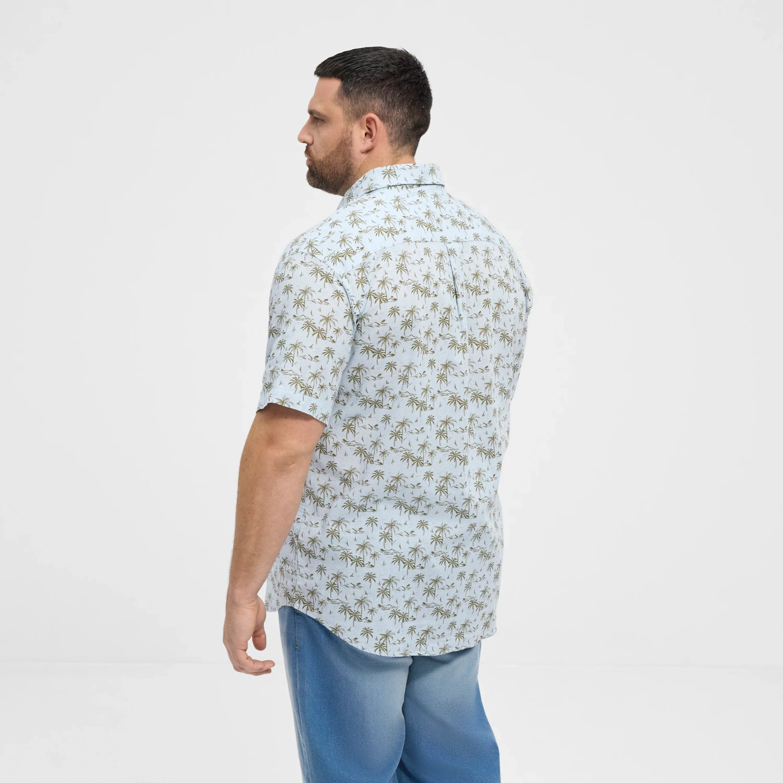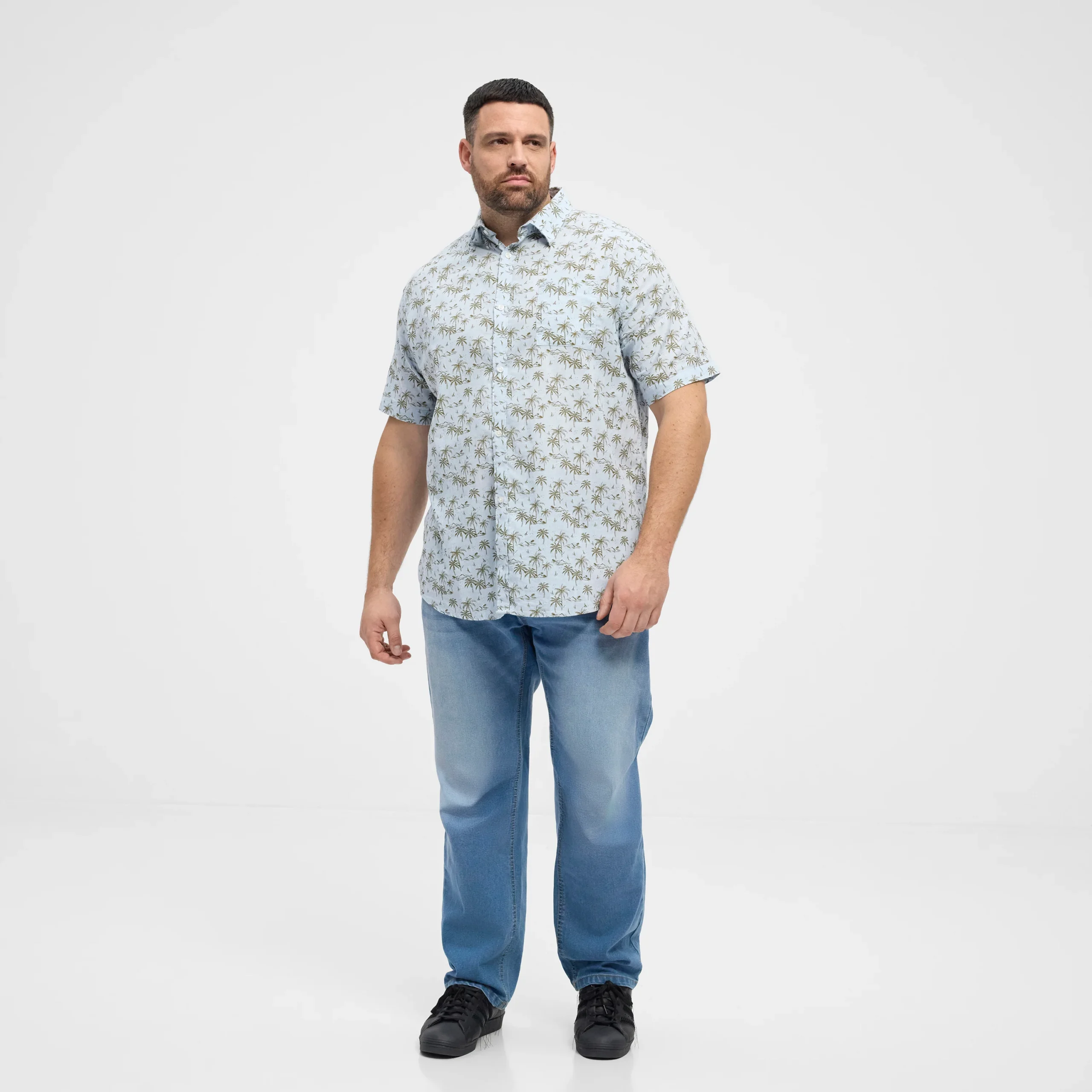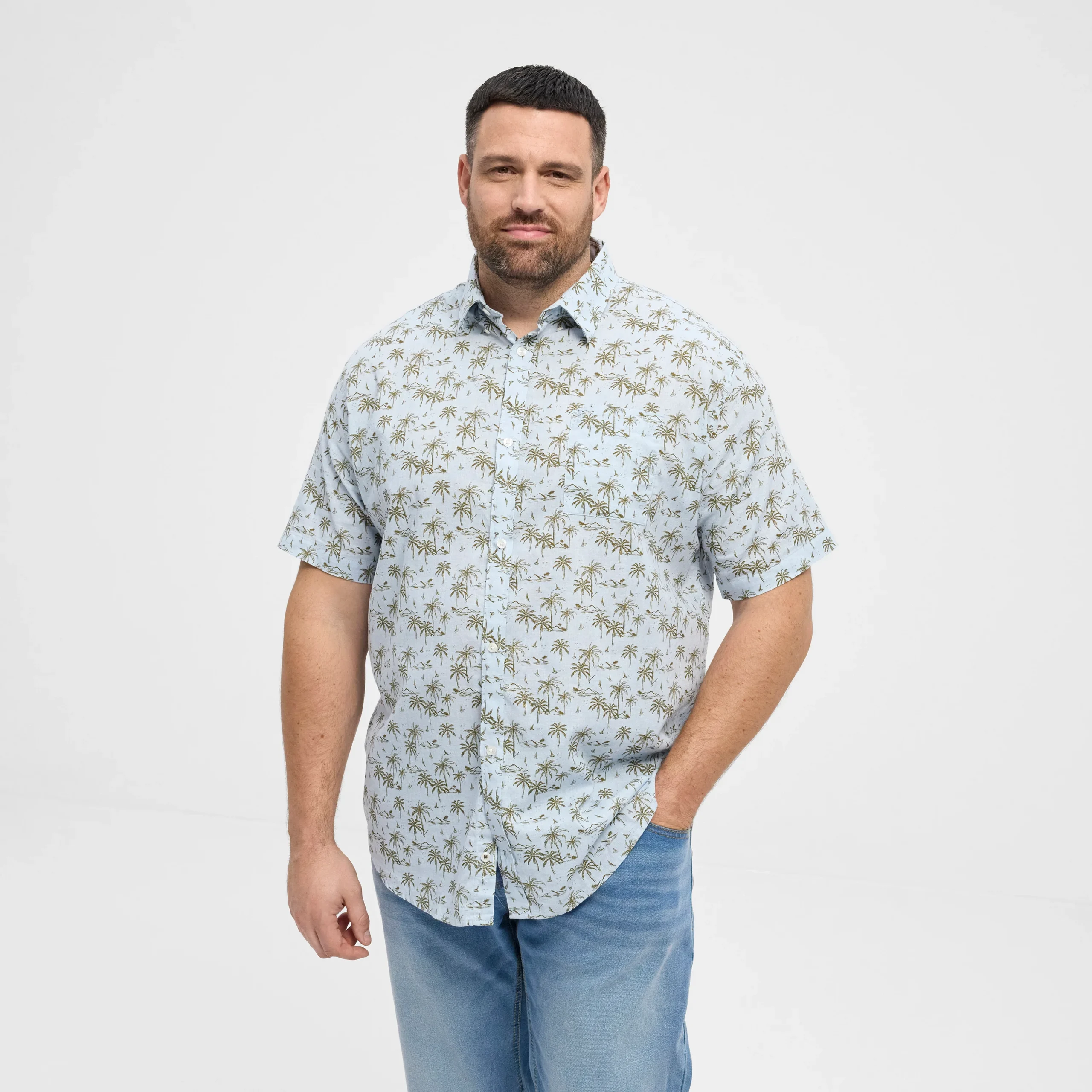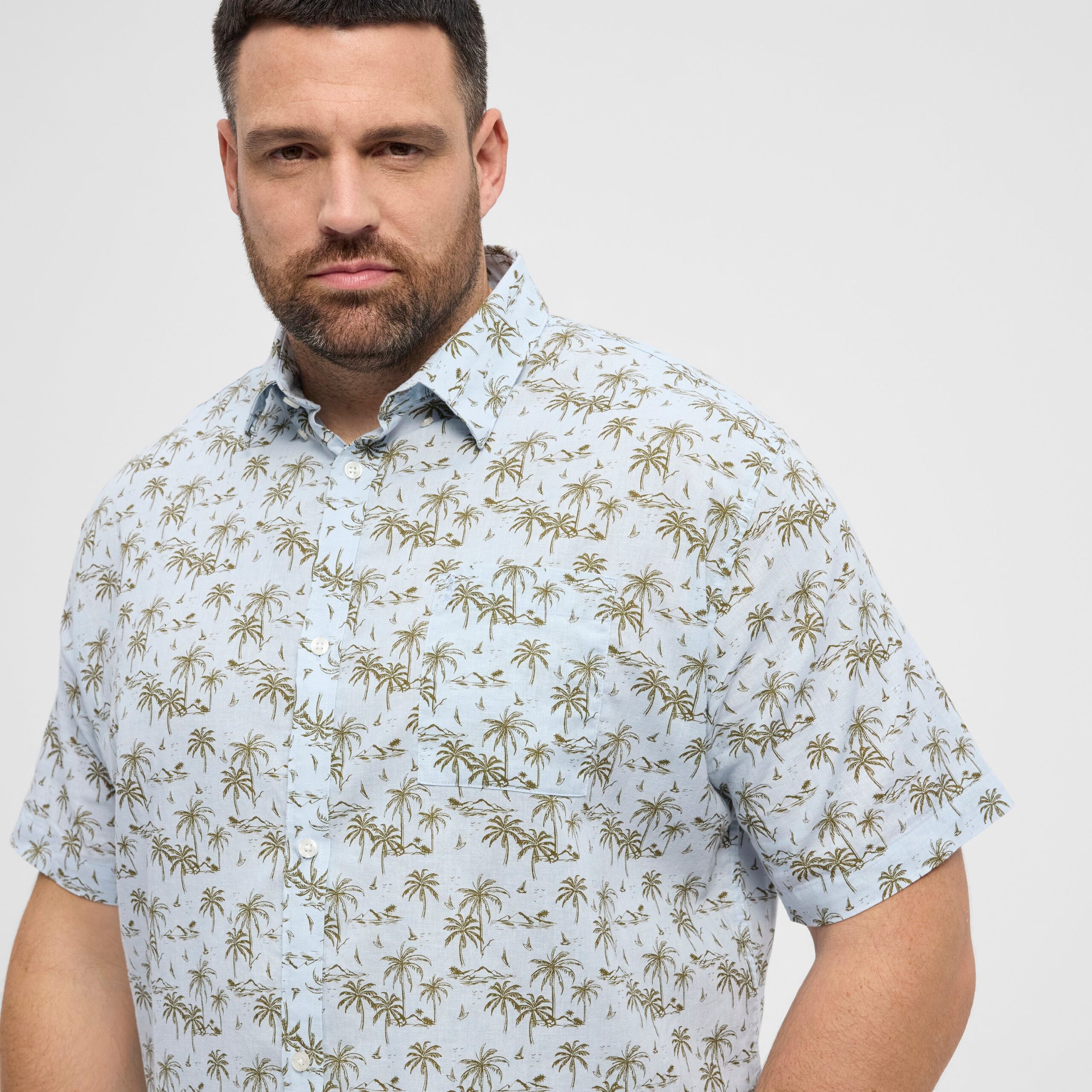 Wyrazisty wzór w oliwkowe palmy nadaje koszuli wakacyjnego charakteru, a błękitna baza kolorystyczna sprawia, że łatwo zestawić ją z jeansami, chinosami czy szortami. To doskonały wybór dla mężczyzn poszukujących stylowej i wygodnej odzieży męskiej w dużych rozmiarach, która sprawdzi się zarówno na co dzień, jak i podczas letnich wyjazdów czy spotkań w luźniejszym stylu.