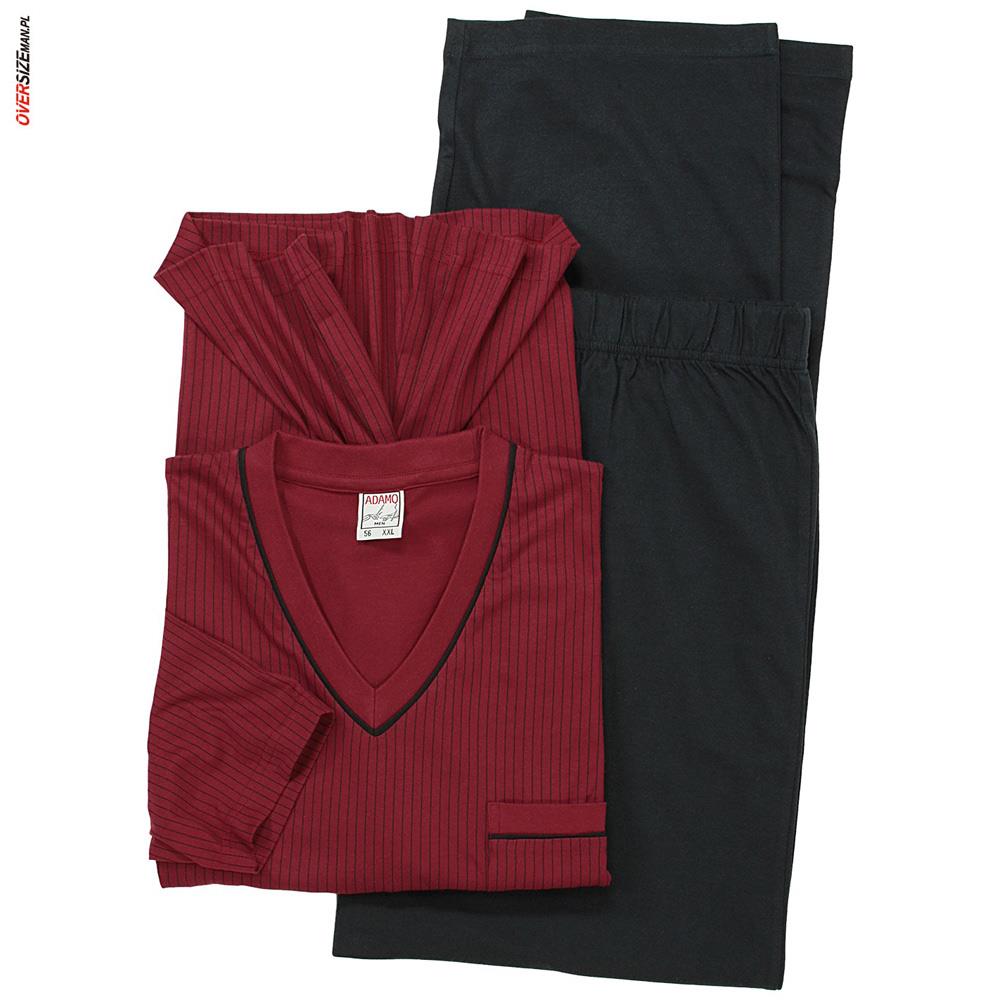 Bordowa pidżama Adamo to idealny wybór dla mężczyzn szukających wygodnej, trwałej i komfortowej odzieży nocnej dopasowanej do większej sylwetki. Model łączy miękkość bawełny z praktycznym designem, stanowiąc wyjątkową odzież męska w dużych rozmiarach.