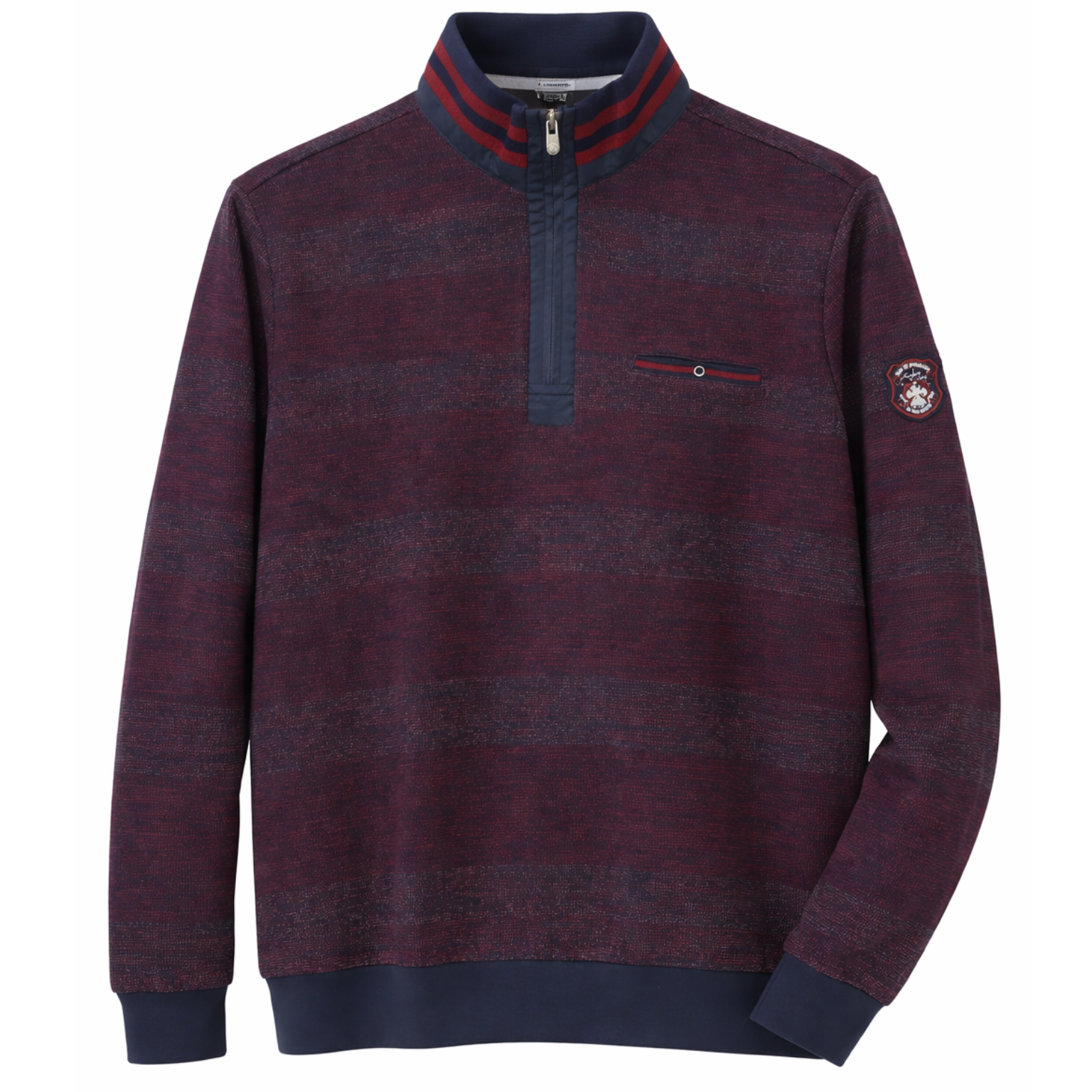 Bordowo-granatowy sweter Campione to doskonały wybór dla mężczyzn, którzy szukają eleganckiego, wygodnego i trwałego elementu garderoby dopasowanego do większej sylwetki. Model łączy komfort, praktyczność i ekskluzywny wygląd, dlatego stanowi wysokiej jakości odzież męska w dużych rozmiarach.