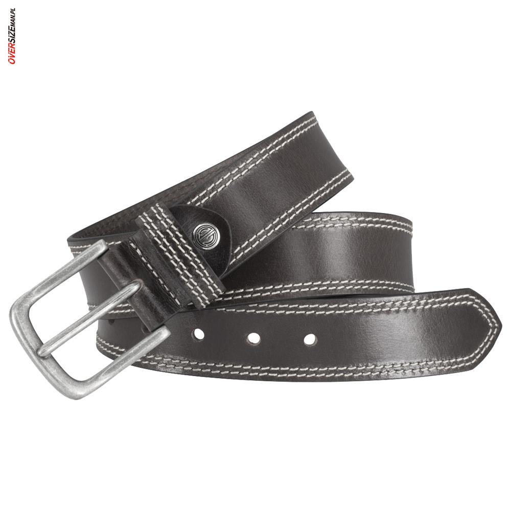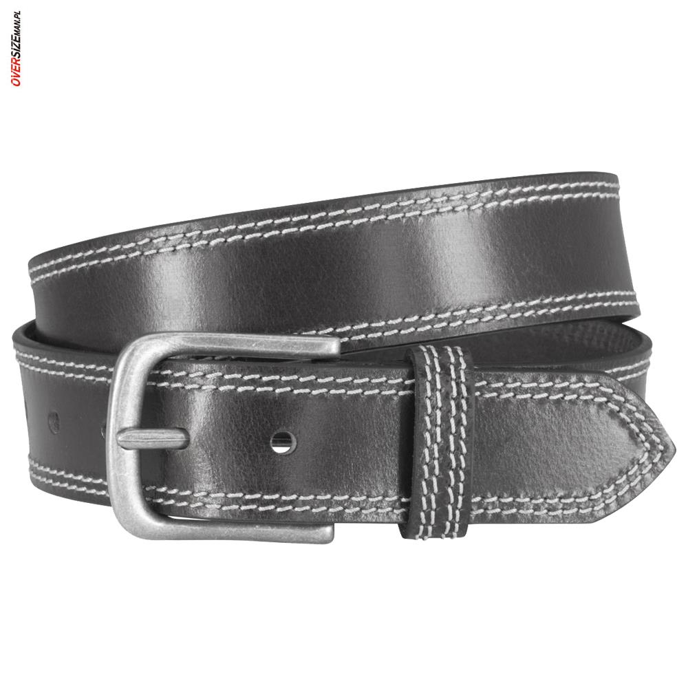 Pasek wyposażony jest w klasyczną srebrną klamrę oraz ozdobne, jasne przeszycia wzdłuż całej długości, które nadają mu eleganckiego wykończenia. Dodatkowo przy klamrze znajduje się srebrny element z logo producenta, subtelnie podkreślający markę i jakość produktu. Pasek Lindenmann sprawdzi się zarówno w zestawieniach wizytowych, casualowych, jak i codziennych stylizacjach. Szukając innych akcesoriów w dużych rozmiarach, warto odwiedzić sklep z dużą odzieżą męską.