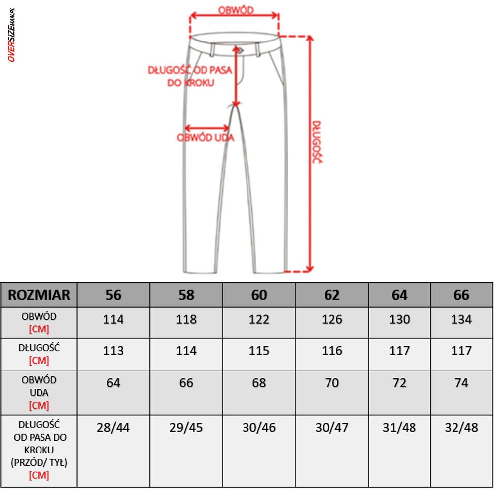 lekko zwężany ku dołowi krój komfortowy dla większej sylwetki