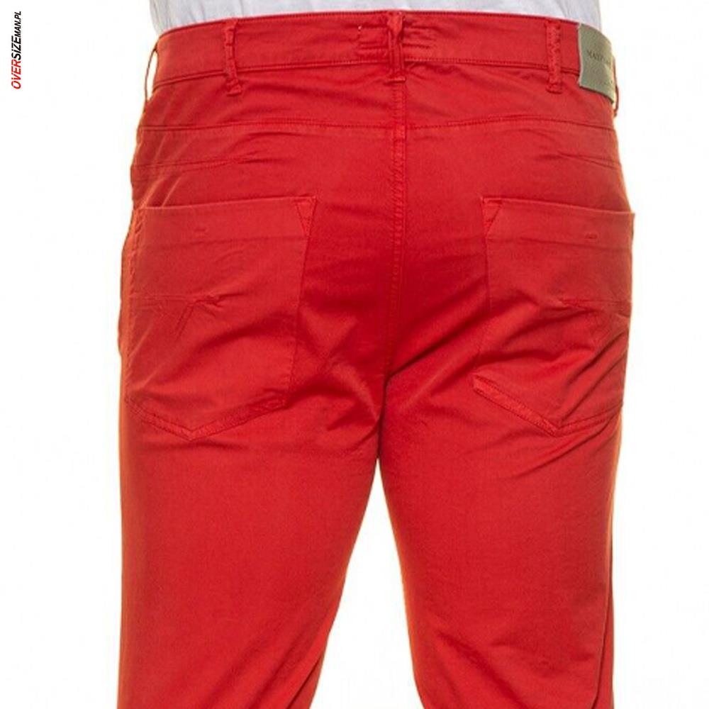Spodnie posiadają klasyczne zapięcie na zamek i guzik oraz cztery praktyczne kieszenie – dwie z przodu i dwie z tyłu, co zwiększa funkcjonalność i komfort noszenia. Intensywny czerwony kolor nadaje modelowi wyrazistego charakteru, pozwalając na tworzenie modnych, odważnych zestawień. Szukając innych wysokiej jakości ubrań w dużych rozmiarach, warto odwiedzić sklep z dużą odzieżą męską.