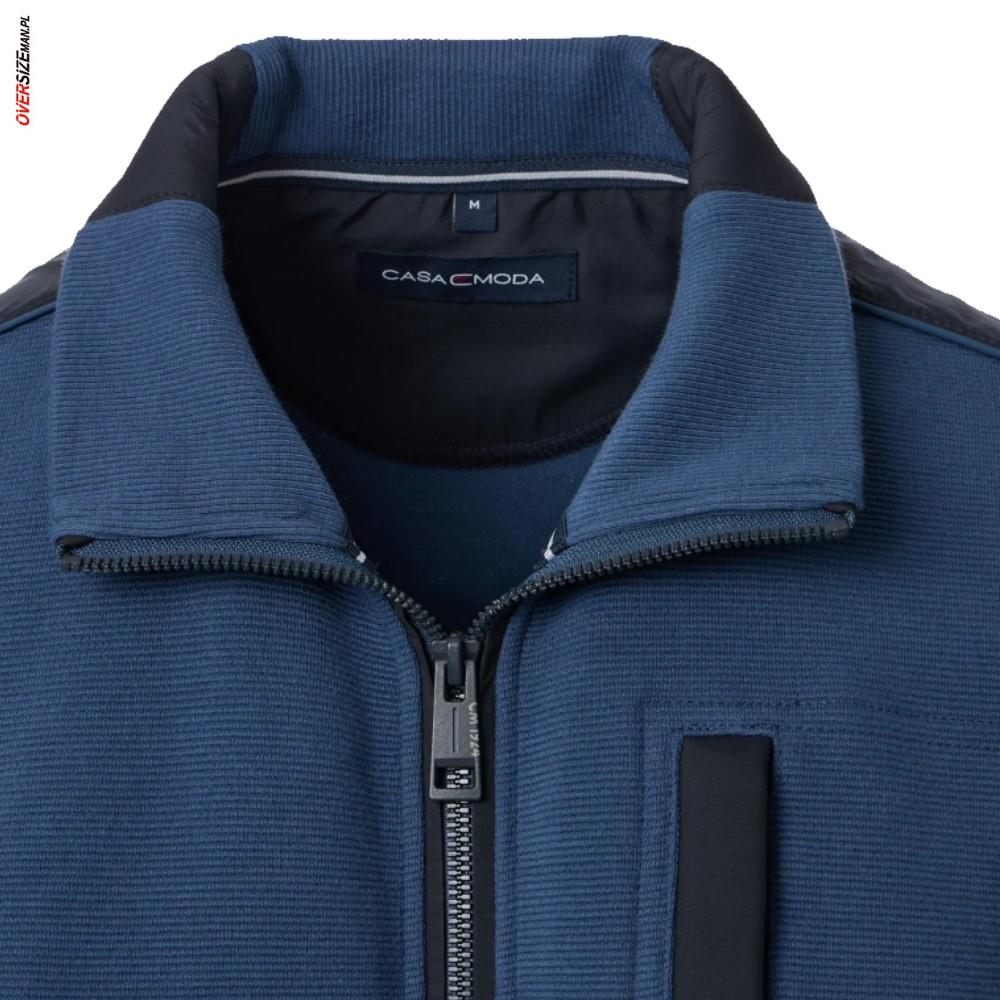 Granatowa bluza męska Casa Moda bez kaptura to wygodna i stylowa propozycja z kolekcji dużej odzieży męskiej, zaprojektowana z myślą o mężczyznach noszących większe rozmiary. Niebieski odcień bluzy przełamany granatowymi wstawkami, m.in. na kieszonkach, nadaje całości nowoczesnego, dopracowanego wyglądu, który sprawdzi się w codziennych i casualowych stylizacjach.