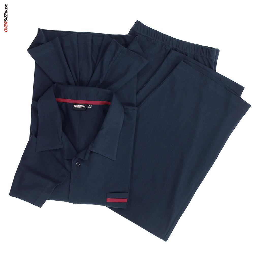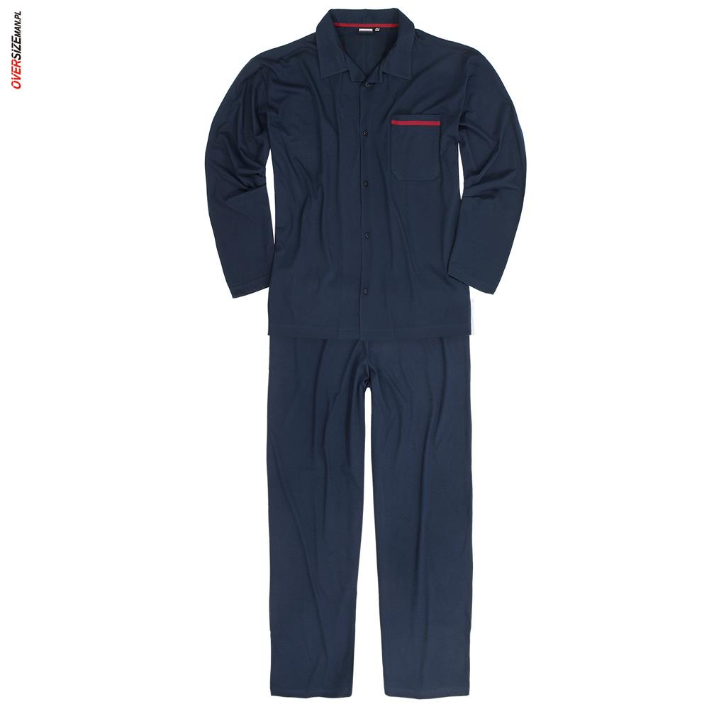 Piżama męska klasyczna z kołnierzykiem – granatowa, zapinana na guziki