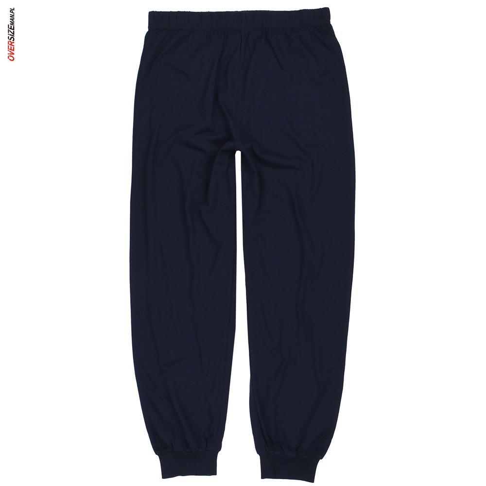 Spodnie w kolorze granatowym mają wygodny, prosty krój oraz elastyczne wykończenie nogawek, co zapewnia swobodę ruchów i idealne dopasowanie. Piżama świetnie sprawdzi się zarówno jako strój nocny, jak i komfortowa odzież domowa.