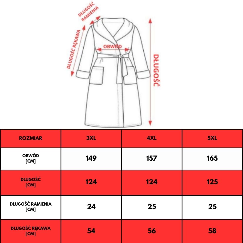 Klasyczny krój z pasem w talii pozwala dopasować szlafrok do sylwetki, a pojemne kieszenie boczne zwiększają funkcjonalność. Szlafrok sprawdzi się zarówno po kąpieli, jak i podczas relaksu w domowym zaciszu, tworząc wygodny, elegancki look w każdym rozmiarze.
