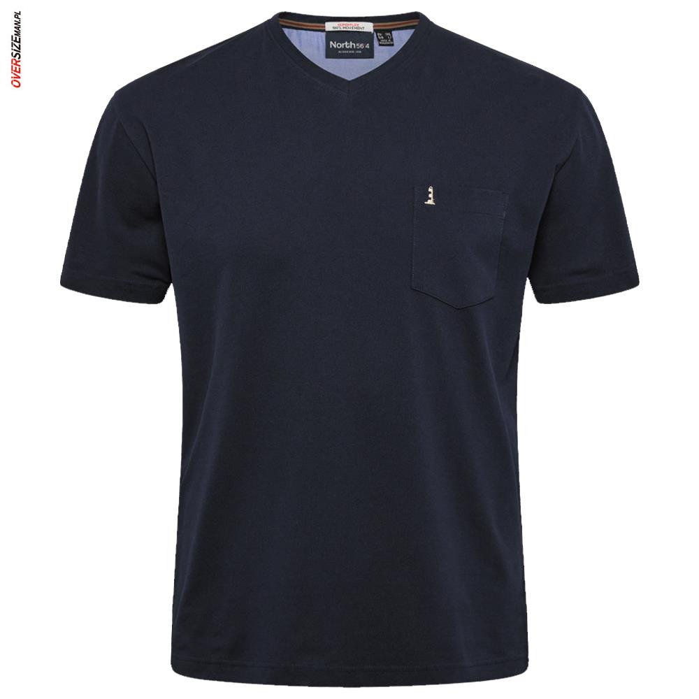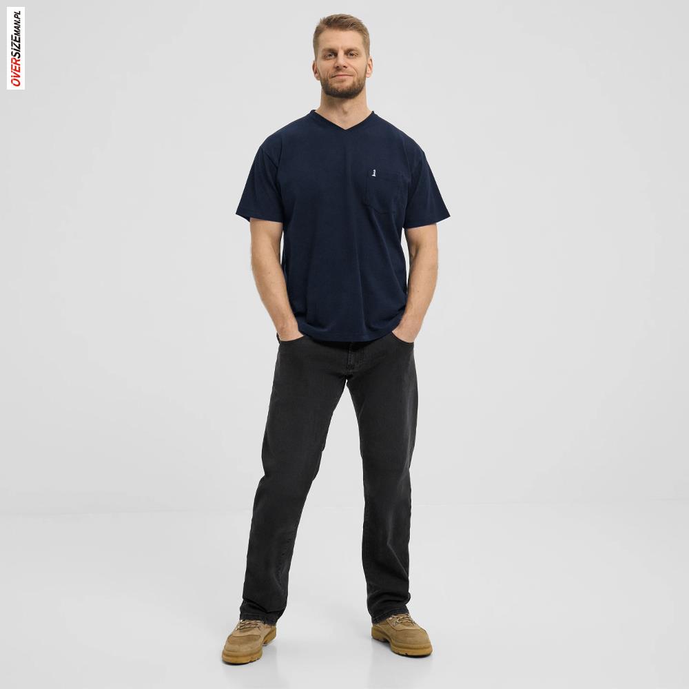 Luźny, klasyczny krój gwarantuje dobre dopasowanie do większej sylwetki i pełną swobodę ruchów bez uczucia ucisku. Dekolt typu V-neck optycznie wydłuża szyję i wysmukla górną część sylwetki, a praktyczna kieszonka na piersi dodaje koszulce casualowego charakteru.