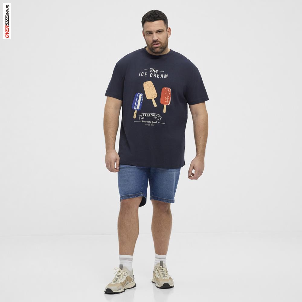 Granatowy T-shirt męski Allsize z nadrukiem wakacyjnym to wygodna i stylowa propozycja dla panów noszących większe rozmiary, którzy szukają komfortowej odzieży męskiej w dużych rozmiarach. Wykonany w 100% z wysokiej jakości bawełny, zapewnia przewiewność i miękkość, a lekko luźny krój gwarantuje swobodę ruchów i wygodę przez cały dzień.