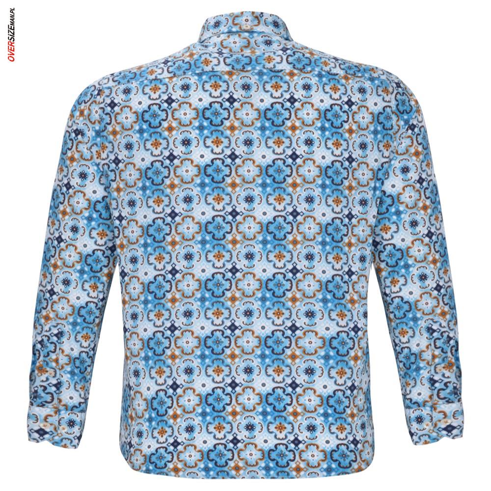 Kolorowa koszula niemieckiej marki Campione to propozycja dla mężczyzn, którzy wybierają odzież męską w dużych rozmiarach i cenią połączenie wyjątkowego designu z komfortem noszenia. Model przyciąga uwagę oryginalnym wzornictwem w mocnych odcieniach błękitu, granatu i pomarańczowego, co sprawia, że koszula doskonale sprawdzi się w wiosenno-letnich stylizacjach. Prosty krój zapewnia swobodę ruchów i wygodę nawet przy większych sylwetkach, czyniąc ją idealną koszulą męską XXL do casualowych i półformalnych zestawów.