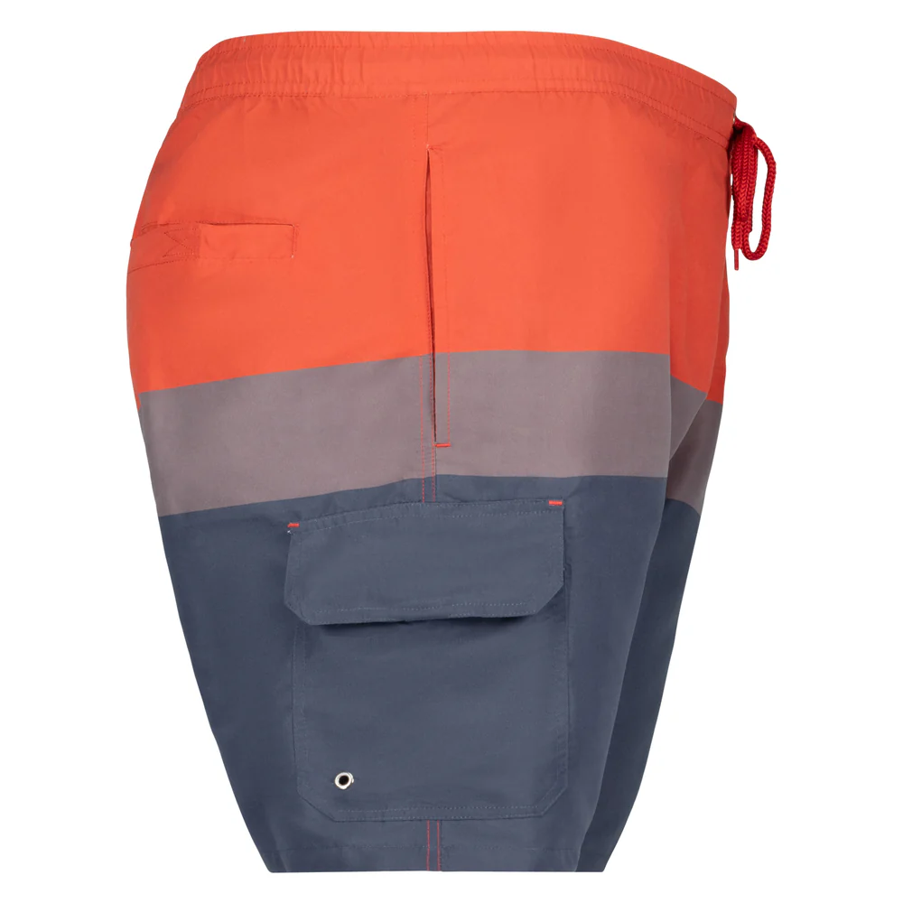 Nowoczesne szorty plażowe ADAMO to idealna propozycja na dni spędzone nad wodą, wizyty na basenie lub relaks w ogrodzie. Modny wzór w blokowe pasy wprowadza kolor do letniej garderoby, a lekki i szybkoschnący materiał gwarantuje komfort noszenia nawet w upalne dni.