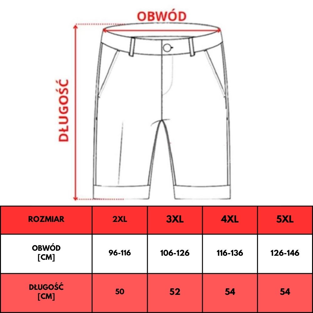 Elastyczny pas z sznurkiem pozwala na idealne dopasowanie, a wbudowane majtki z siateczki dodatkowo podnoszą wygodę. Szorty posiadają dwie kieszenie boczne, tylną oraz praktyczną kieszeń cargo z rzepem na prawej nogawce – idealną na klucze lub drobne przedmioty. Regularny krój zapewnia swobodę ruchów, dzięki czemu są świetnym wyborem dla mężczyzn potrzebujących odzieży męskiej w dużych rozmiarach.