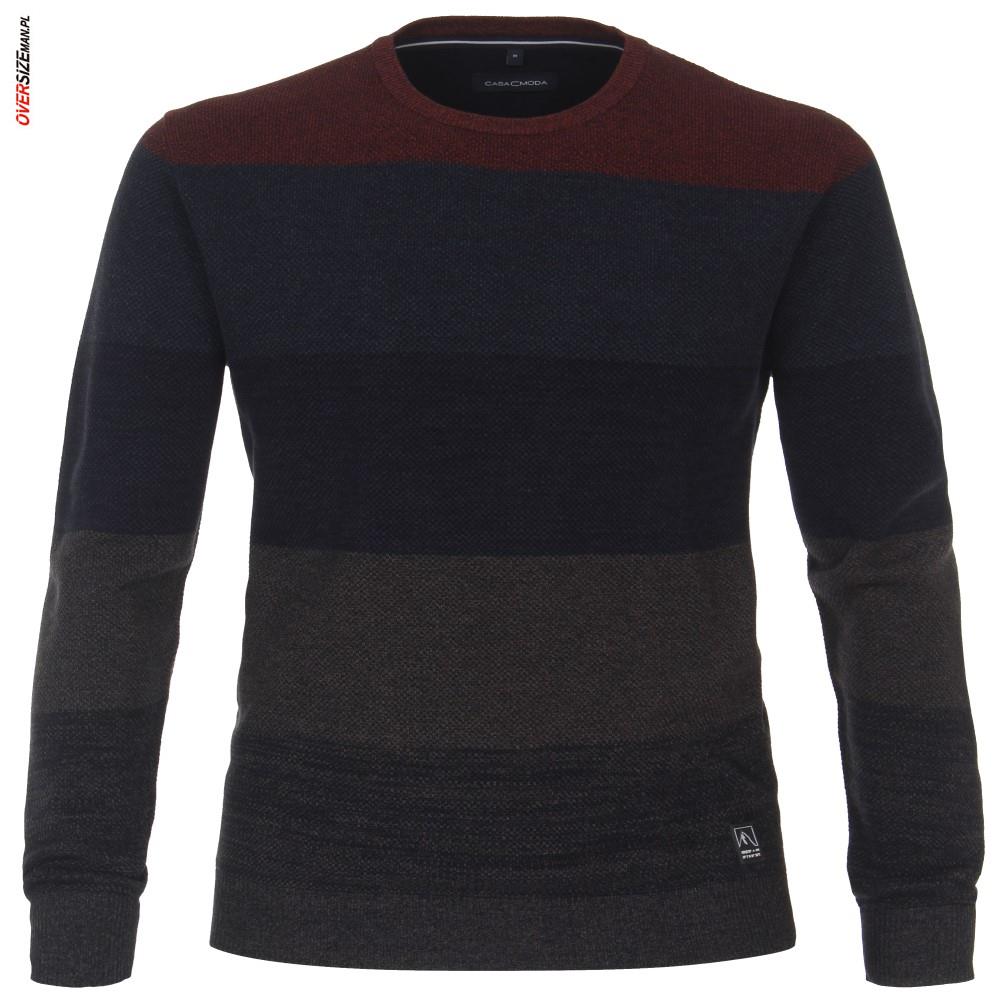 Granatowy sweter niemieckiej marki Casa Moda to propozycja dla mężczyzn szukających odzieży męskiej w dużych rozmiarach, łączącej klasyczny styl z komfortem noszenia. Model o prostym, regularnym kroju doskonale sprawdzi się w codziennych oraz półformalnych stylizacjach, gwarantując swobodę ruchów i wygodę przez cały dzień.