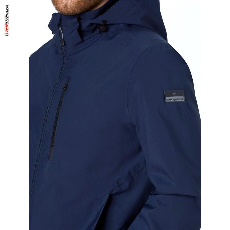 Kurtka wyposażona jest w trzy kieszenie zewnętrzne oraz dwie kieszenie wewnętrzne, które pozwalają bezpiecznie przechowywać niezbędne drobiazgi. Odpinany kaptur umożliwia dopasowanie do aktualnych warunków pogodowych, a regulowany dół kurtki poprawia komfort noszenia przy większych gabarytach. Rękawy zakończone napami pozwalają na lepsze dopasowanie, a subtelne logo Redpoint na ramieniu podkreśla jakość i markowy charakter produktu. To solidna propozycja z kategorii kurtki męskie w dużych rozmiarach.
