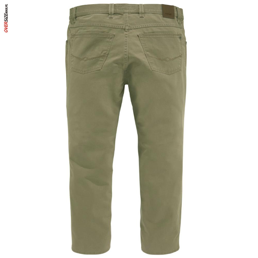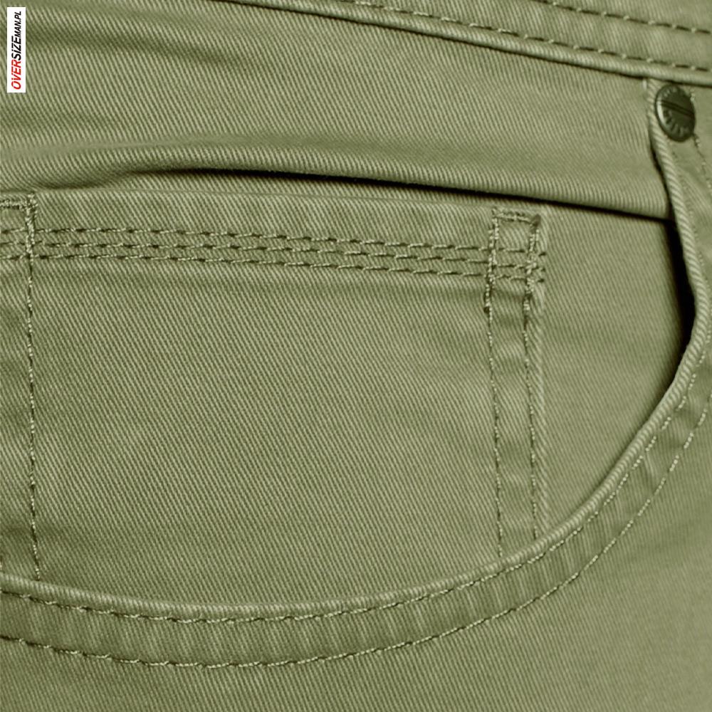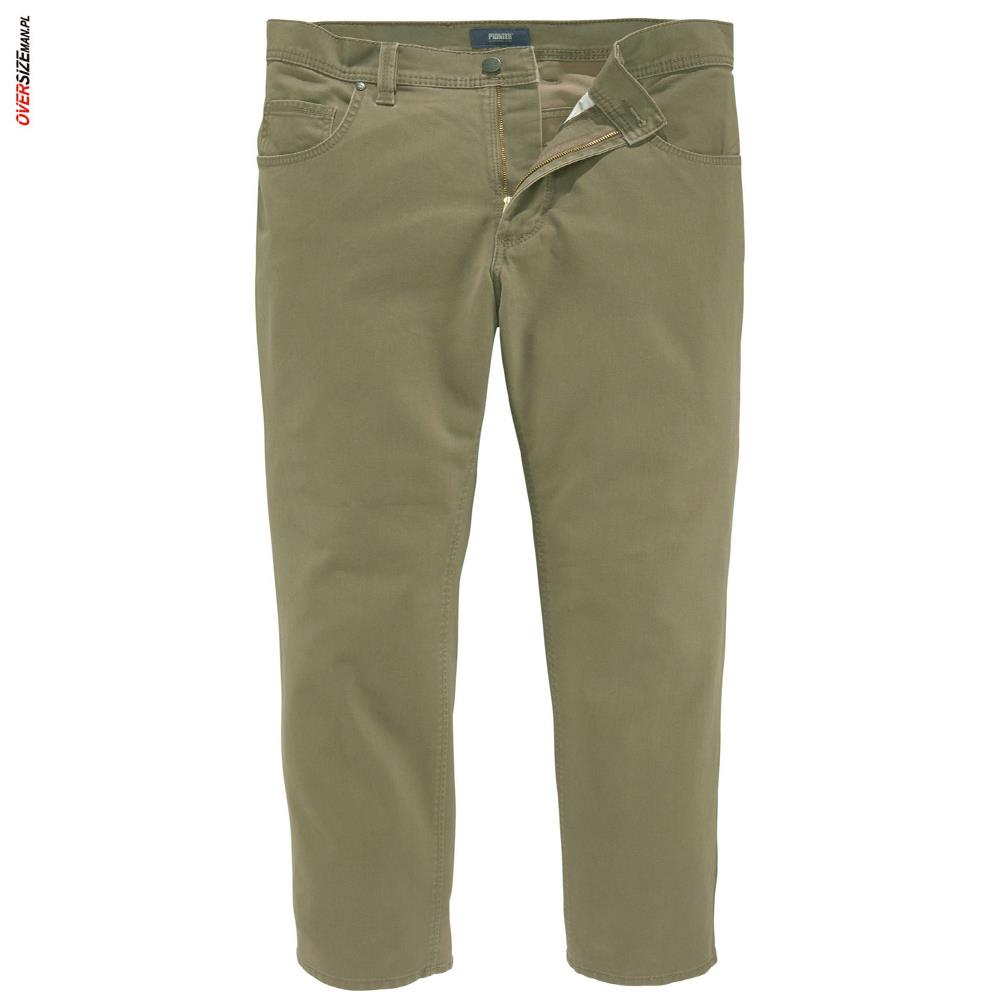 Oliwkowe spodnie męskie marki Pioneer to klasyczne, bawełniane spodnie w dużych rozmiarach, łączące elegancję z komfortem codziennego użytkowania. Wykonane z wysokiej jakości bawełny z dodatkiem elastanu (97% bawełna, 3% elastan), dopasowują się do sylwetki, zapewniając wygodę i trwałość materiału.