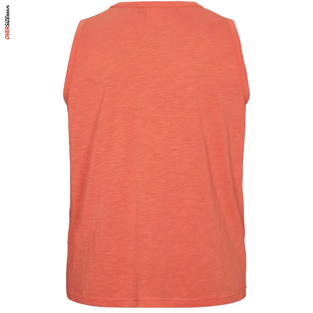 Koralowa koszulka męska bez rękawów duńskiej marki Allsize to lekka i wygodna propozycja na upalne dni dla mężczyzn wybierających odzież męską w dużych rozmiarach. Model wyróżnia się subtelnym, białym nadrukiem na piersi, który nadaje koszulce wakacyjnego charakteru i nowoczesnego stylu.