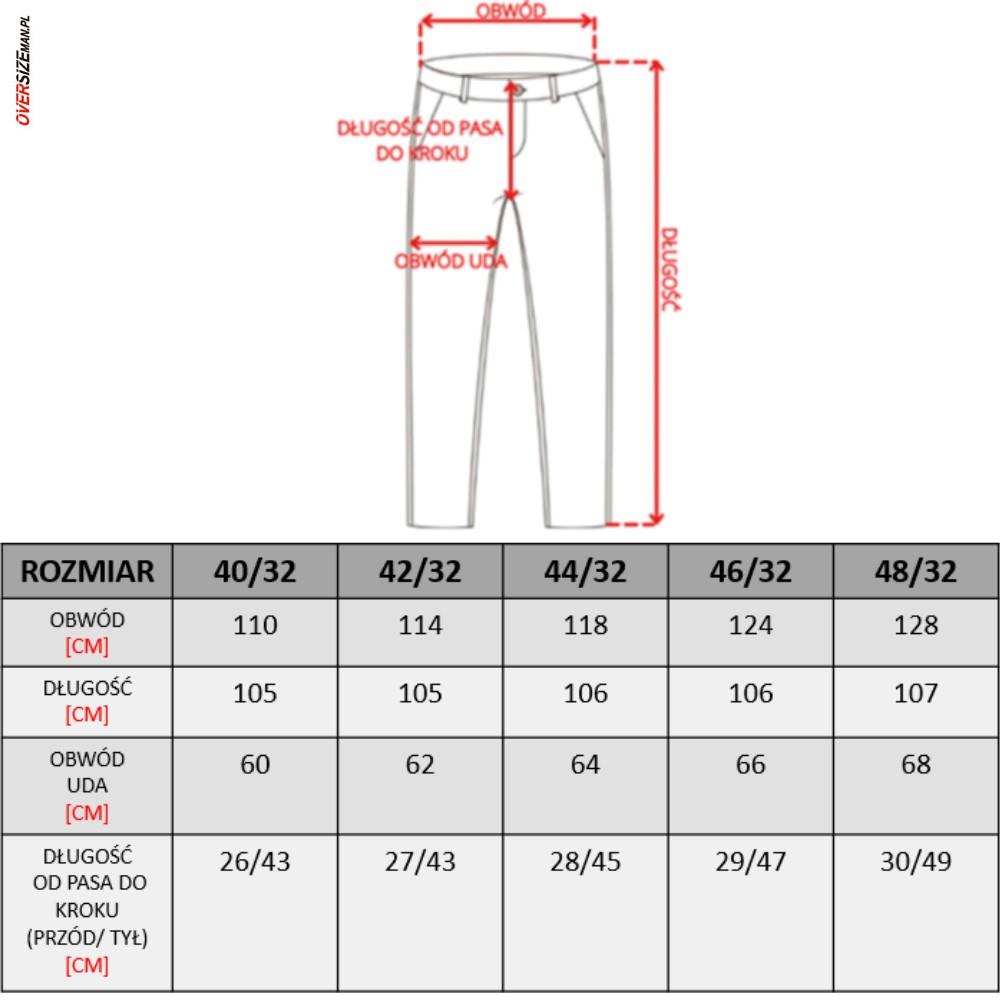 Spodnie zostały wykonane z wysokogatunkowej bawełny z dodatkiem elastanu, który zwiększa elastyczność materiału i poprawia dopasowanie bez uczucia ucisku. Tkanina jest trwała, przyjemna w dotyku i odporna na codzienne użytkowanie. Jeansy zapinane są klasycznie na zamek i guzik, dzięki czemu są praktyczne i wygodne. Jeśli szukasz sprawdzonych ubrań dla panów noszących odzież męska duże rozmiary, sprawdź ofertę, jaką proponuje duża odzież męska.